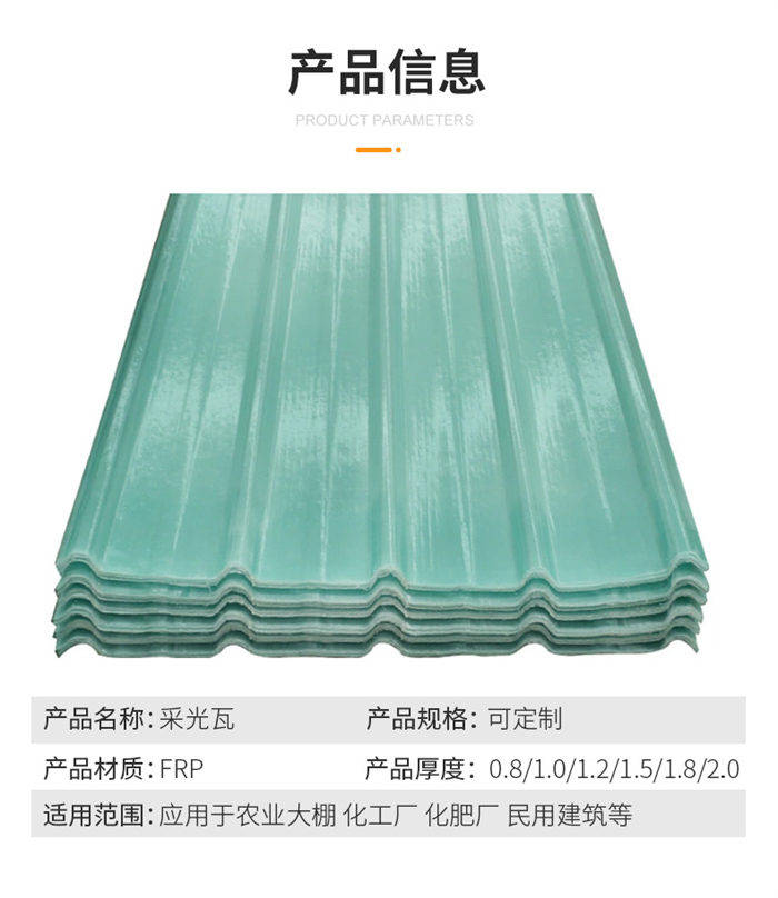 玻璃鋼采光瓦具有連續(xù)成型、無限延長、輕質(zhì)高強(qiáng)、耐老化、透光、阻燃、尺寸精確、表面光潔、隨意著色、免維護(hù)、綠色環(huán)保等特點(diǎn),產(chǎn)品廣泛用于大型建筑、現(xiàn)代輕鋼結(jié)構(gòu)彩色壓型板、溫室大棚、體育場館、水產(chǎn)養(yǎng)殖等場所。